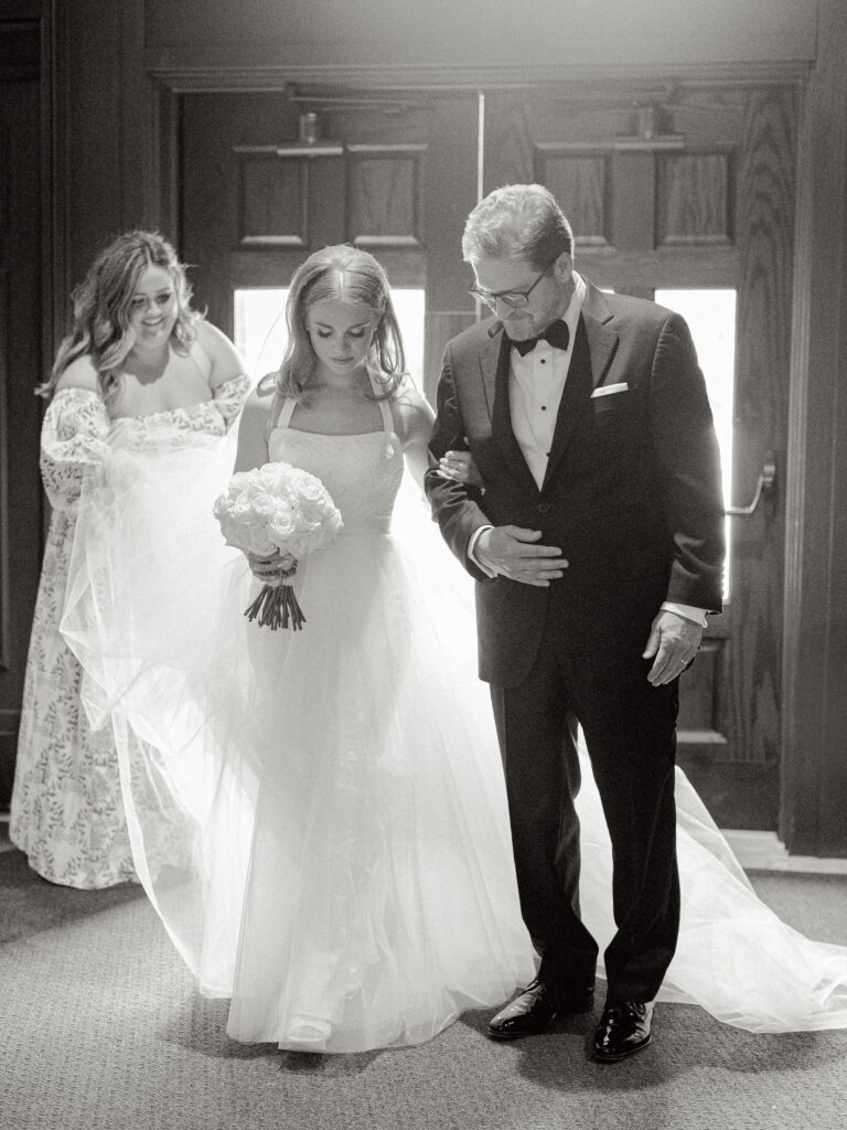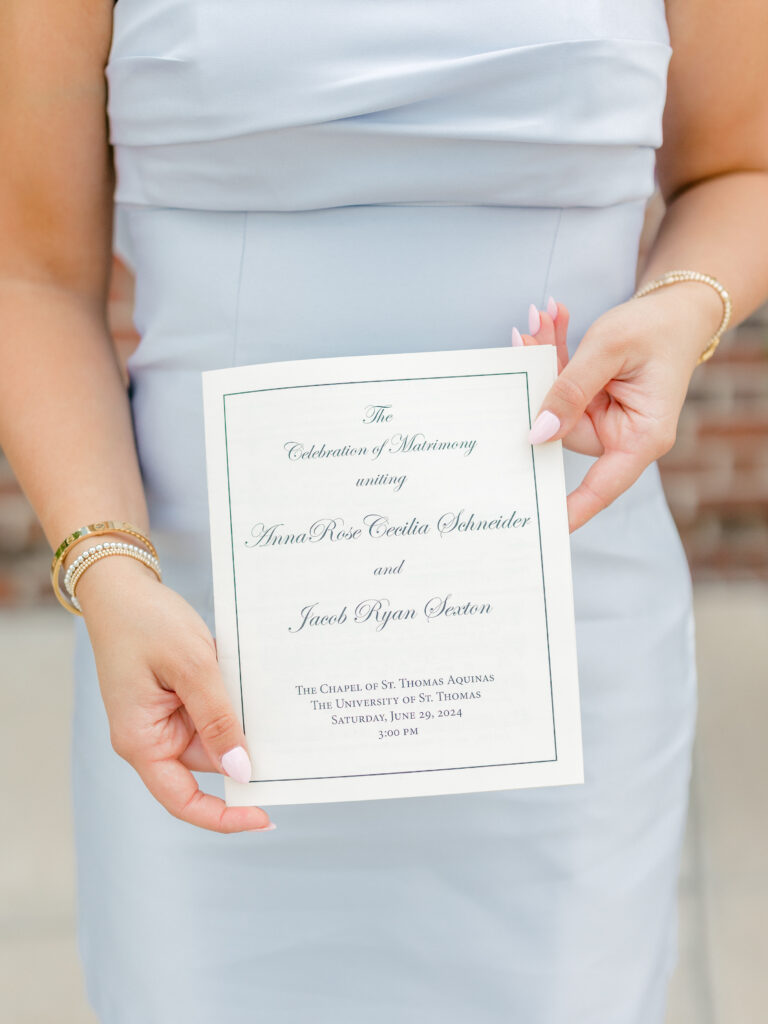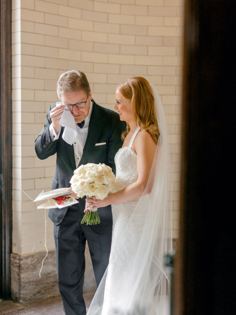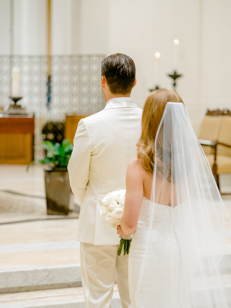 Once everyone was ready, we made our way to the University of St. Thomas for AnnaRose and Jake’s first look. The couple wanted that traditional down-the-aisle moment but knew the importance of taking portraits beforehand the ceremony. Their solution was a private first look inside the chapel — an intimate moment just for the two of them.